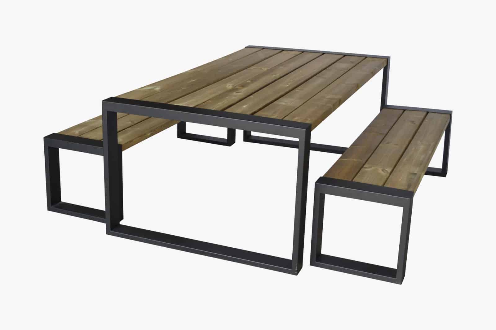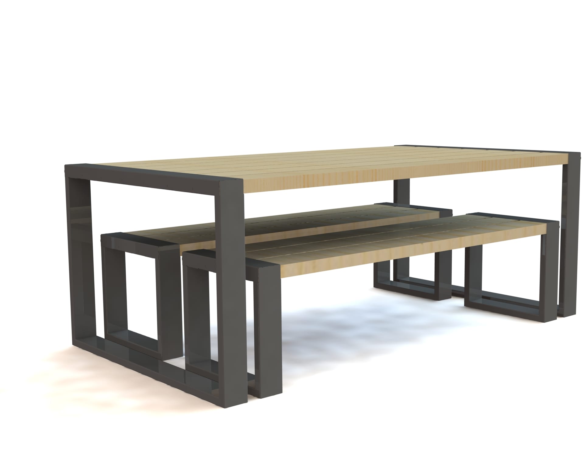Kit de 1 mesa y dos bancos para 6 personas, ideal para disfrutar de las comidas al aire libre.