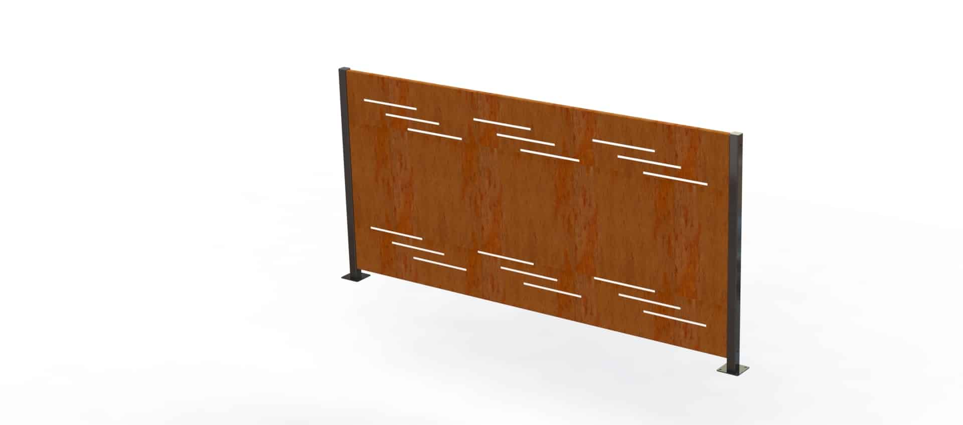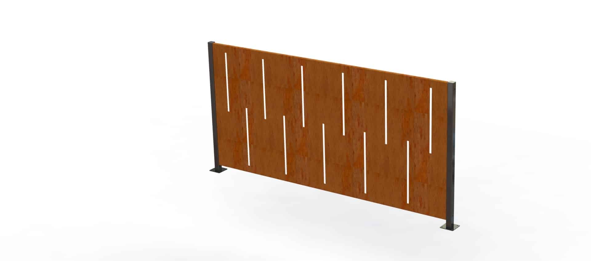 Fabricada en chapa de acero cortada por láser, con posibilidad de personalizar tanto el patrón como el acabado superficial.