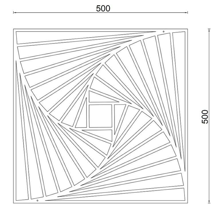Pieza decorativa para pared cortada en acero, inspirada en patrones geométricos paramétricos. El diseño juega con lÃneas rectas que